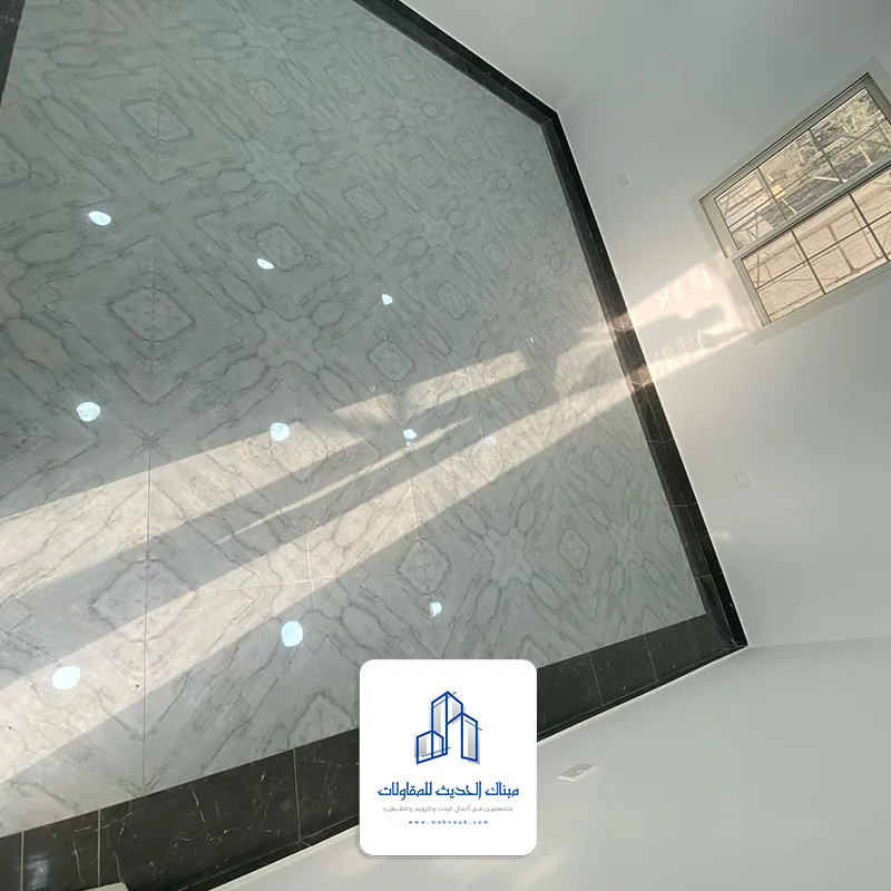 الأرضيات: بورسلان 80×80 سم لامع (High Gloss) لإضفاء الفخامة.