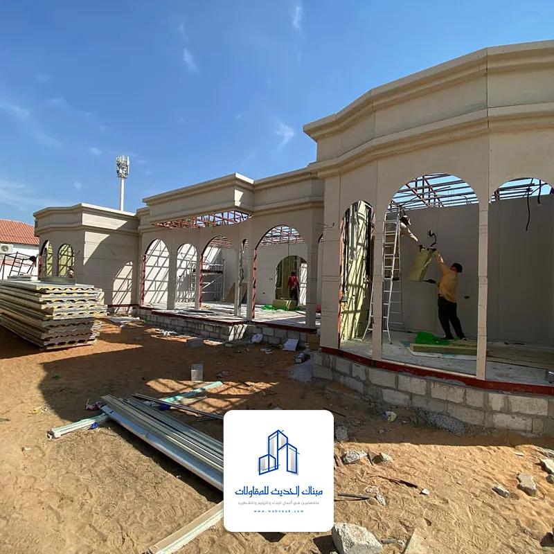 في ثقافتنا السعودية، المجلس الخارجي (الديوانية أو المشب) ليس مجرد غرفة إضافية، بل هو “واجهة البيت” ومكان اجتماع الرجال والضيوف. ولأن أجواء الدمام تتطلب عزلاً قوياً كذلك تكييفاً ممتازاً، فإن البناء التقليدي قد لا يكفي. في هذا المشروع بحي الريان، قدمت “مبناك الحديث للمقاولات” نموذجاً للمجلس العصري الذي يجمع بين فخامة التصميم الداخلي و قوة البناء المعزول، ليكون جاهزاً لاستقبال الضيوف في الصيف أو الشتاء بأعلى مستويات الراحة.